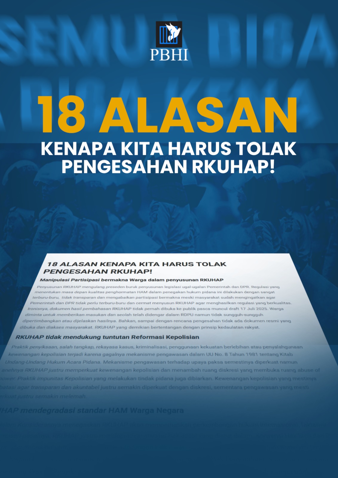 18 ALASAN KENAPA KITA HARUS TOLAK PENGESAHAN RKUHAP!