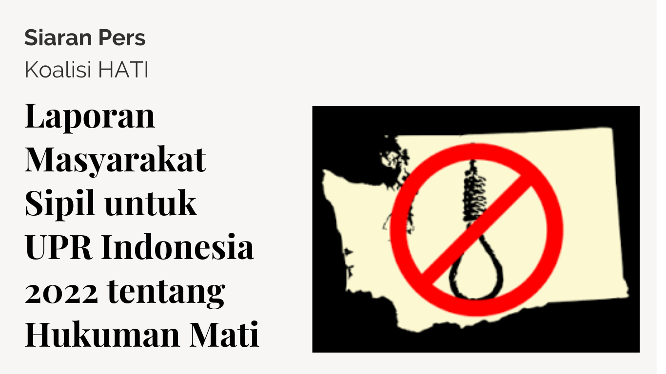 Pada hari Selasa, 29 Maret 2022 Koalisi untuk Hapus Hukuman Mati (Koalisi HATI) mengirimkan laporan gabungan untuk Universal Periodic Review (UPR) Indonesia tahun 2002 tentang hukuman mati. Dalam laporan tersebut, Koalisi HATI melaporkan situasi hukuman mati di Indonesia sejak laporan terakhir di tahun 2017. Pada periode UPR sebelumnya, Indonesia mendapatkan 14 rekomendasi dari 27 negara terkait hukuman mati. Indonesia menerima 2 (dua) dari 14 rekomendasi UPR, yaitu rekomendasi nomor 141.52 dan 141.60 tentang moratorium dan pemantauan fair trial.